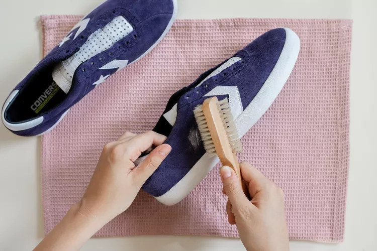 After cleaning, allow the shoes to air-dry. Once the interior and exterior of the suede sneakers are completely dry, use the suede brush to lift the nap.